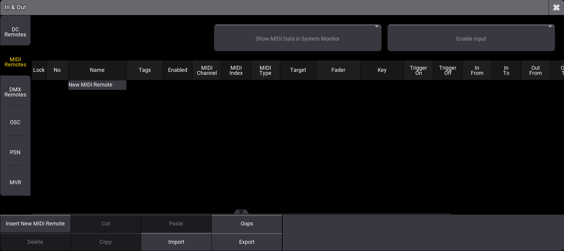 - Open Menu - In & Out - MIDI Remotes.