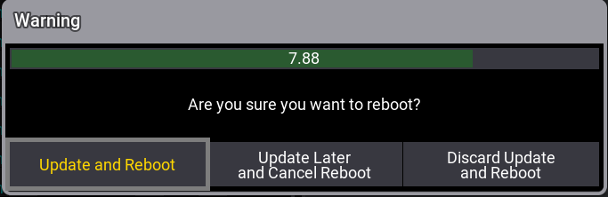 - Discard Update and Reboot: Aborts the update and reboots the device.