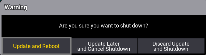 - Discard Update and Shutdown: Aborts the update and shuts down the device.