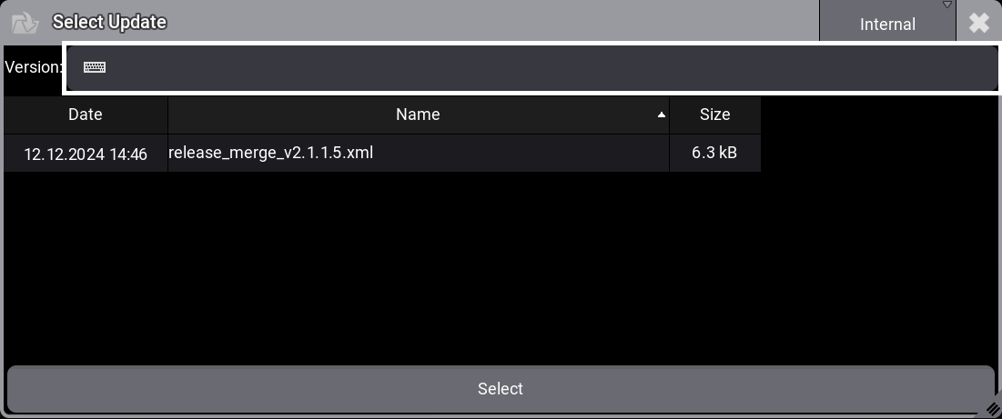 - Select the location that contains the update files (internal or any plugged-in external device). Select the release_viz_key_vx.x.x.x.xml file.