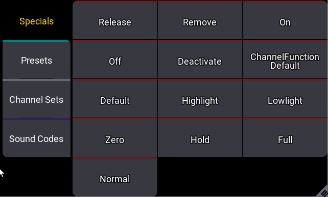 - ChannelFunctionDefault: Tap to set the attribute to the default value of the selected channel function. For more information see ChannelFunctionDefault Keyword.