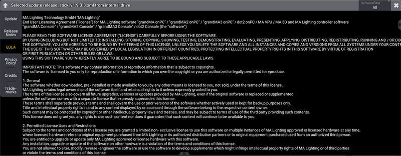 After selecting grandMA3 mode, the console starts to boot and the pop-up End-User License Agreement (EULA) opens.