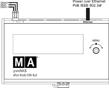 Important: Installer la xPort Node DIN-Rail grandMA3 horizontalement de sorte que le terminal d'entrée soit situé en bas et le terminal DMX en haut. |