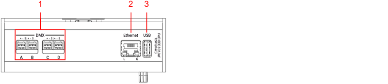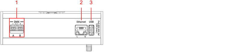 - Connect the grandMA3 xPort Node DIN-Rail with your PC, laptop, or a grandMA3 console using the RJ45 connector.