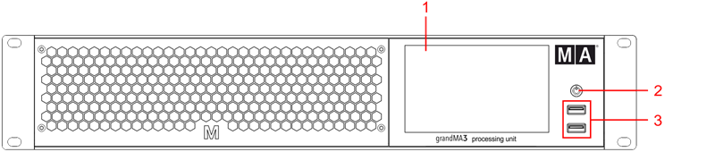 - Die grandMA3 processing unit über die etherCON/RJ45 Buchse mit dem PC, Laptop oder der grandMA3 Konsole verbinden.