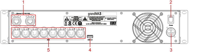 - Connect the grandMA3 processing unit with your PC, laptop, or a grandMA3 console using an etherCON/RJ45 connector.
