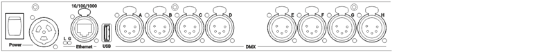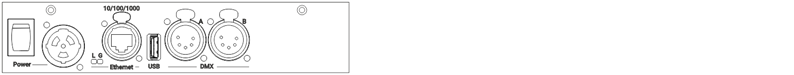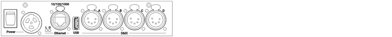 Wichtig: Den USB-Anschluss nur für Software-Aktualisierungen verwenden. Keine Geräte anschließen (zum Beispiel Tastatur oder Maus). Jeder 5-polige DMX512-A Out kann auch als DMX In konfiguriert werden. |