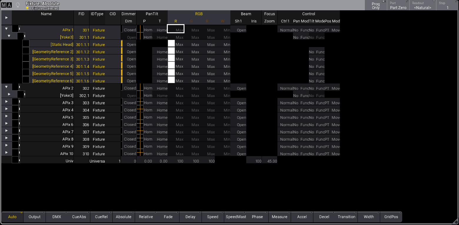 - 10 patched fixtures. See Add Fixtures to the Show.