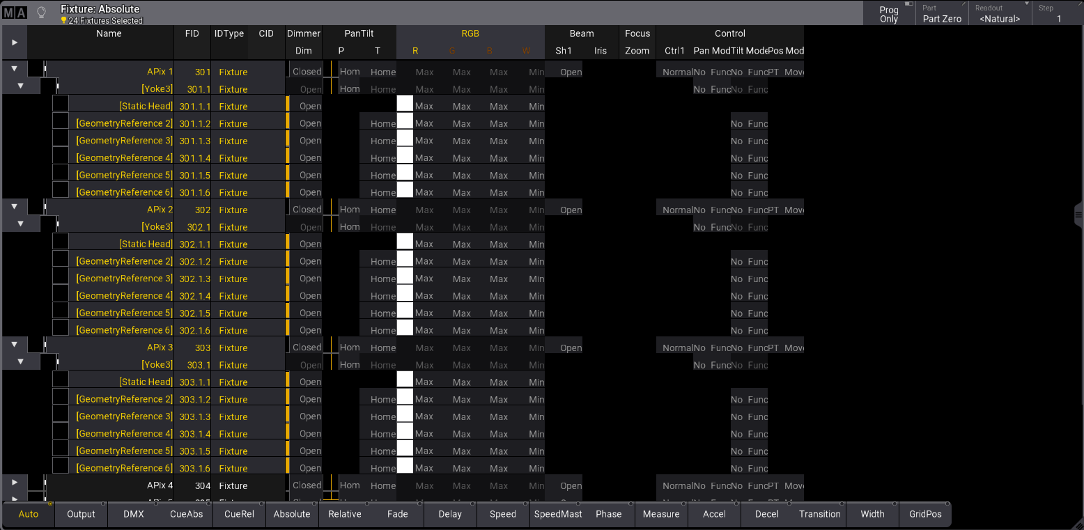 | See the System Colors topic to learn more about the font colors used when selecting or deselecting fixtures in the fixture sheet. |