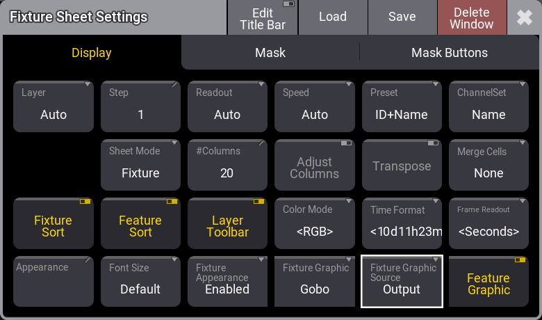 We also want the 'Fixture Appearance' set to "Enabled", 'Fixture Graphic' should be "Gobo", and 'Fixture Graphic Source' should be "Output".