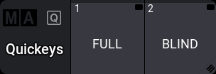 - To set the dimmer of the selected fixtures to 100%, tap FULL in the Quickey pool.
