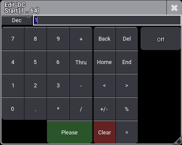 - Set the DC Start value and then tap Please. The start signal is set.