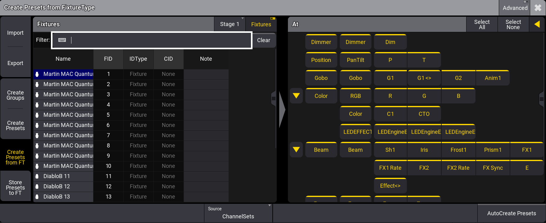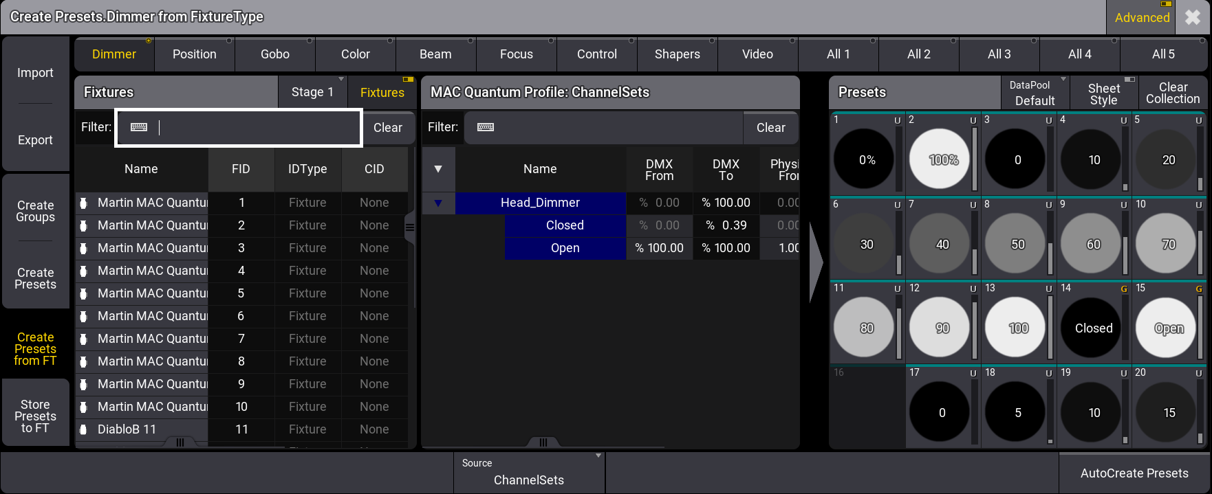 Create Presets from Fixture Type (FT)