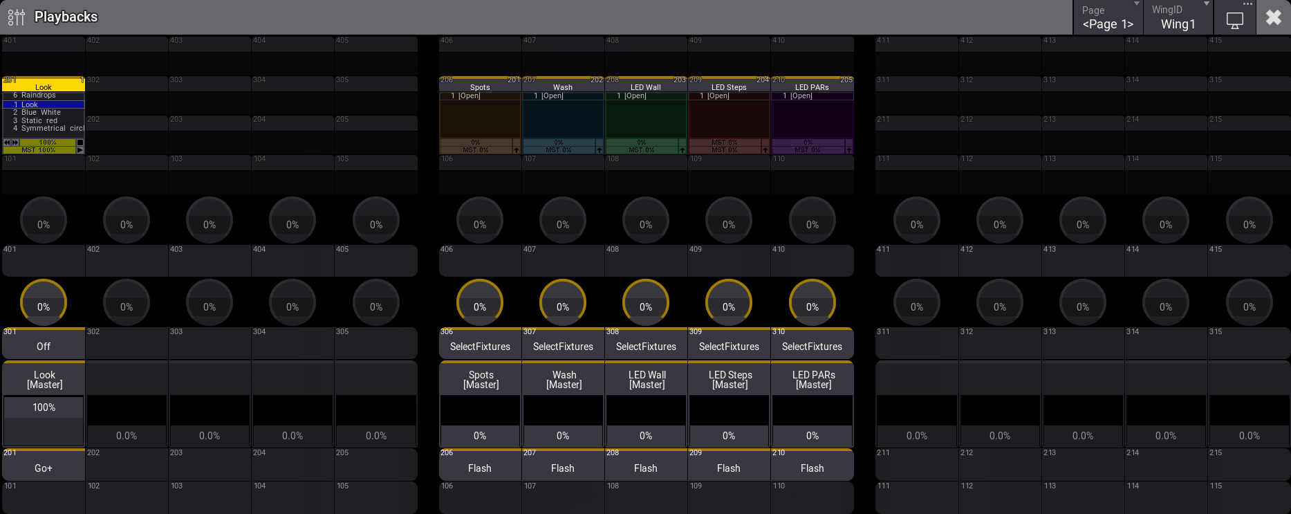 The Playback Controls menu shows an on-screen version of the physical faders of a console and/or wings.